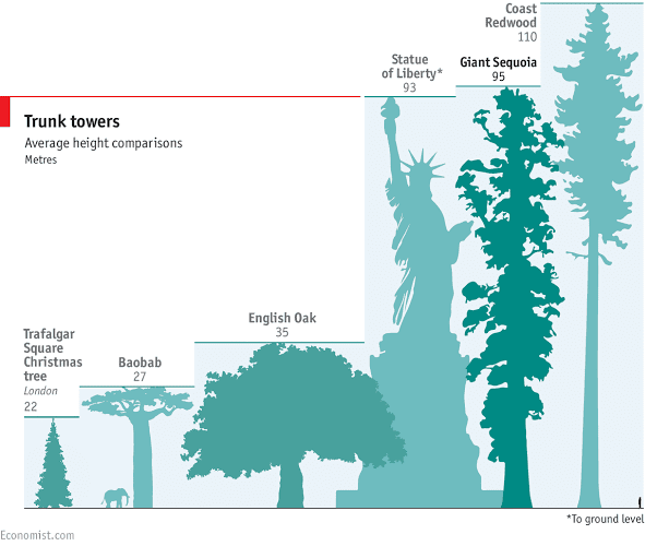 As their name implies, giant Sequoias can grow up to the height equivalent of a 26 story building and wide as 2 metres. They reproduce through cones which a young Sequoia produce after 12 years.